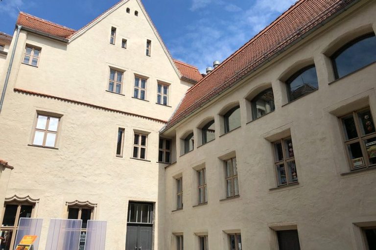 Man tritt vom Marktplatz durch ein Tor und steht im Mittelalter. Der Innenhof ist ein stiller Traum, an dessen Ende eine historische Druckerwerkstatt noch so arbeitet wie zu Luthers Zeiten.